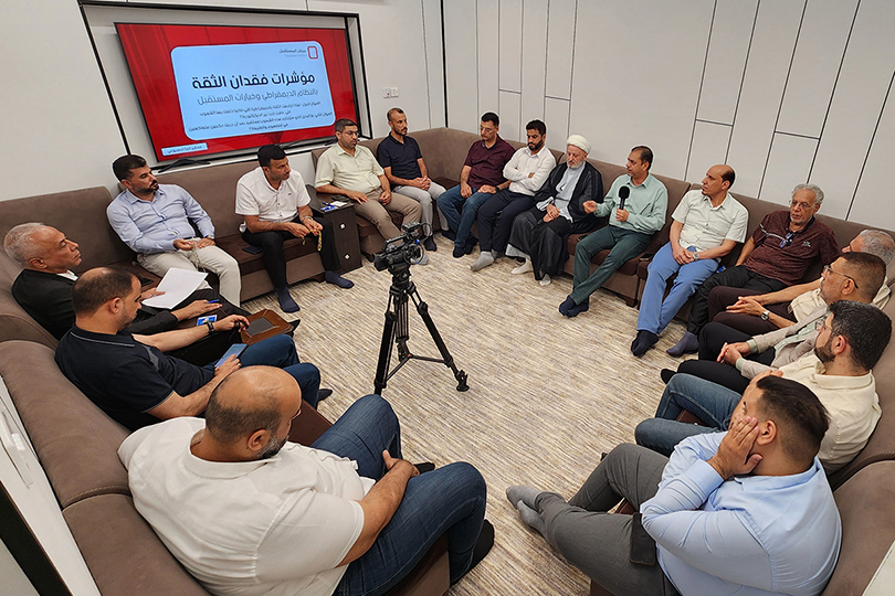 اعدّ الورقة البحثية الدكتور اسعد كاظم شبيب- أستاذ الفكر السياسي في جامعة الكوفة، وقدمها الدكتور لطيف القصاب- باحث في مركز المستقبل للدراسات الستراتيجية، واستعرضت الورقة أزمة الثقة في النظام الديمقراطي وتطبيقاته، خاصة في السياق العراقي. كما تناولت مؤشرات فقدان الثقة مثل الفساد واحتجاز السلطة من قبل النخب والأحزاب المتنفذة، وقارنت الورقة بين المفهوم المثالي للديمقراطية والتطبيقات المشوهة التي أدت إلى فشل التجارب الديمقراطية. والبحث في البدائل الممكنة لمواجهة هذه الأزمة، مع التأكيد على أن الإصلاح وبناء دولة المؤسسات هو الخيار الأفضل لتجاوز هذا التراجع السياسي والاجتماعي. وأضاف الباحث: